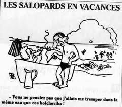 Quant au « coup de gueule de Gérard » – euh, Gérard qui ? Si c’est Gérard PATUREAU, ça ne m’empêchera pas de continuer à discuter avec lui avec plaisir –   qui traite  de « salopards » ceux qui rapprochent extrême-gauche et extrême-droite, le terme de « salopards en casquette » était utilisé par la bourgeoisie navrée de voire débouler sur « ses » plages les ouvriers des premiers congés payés en 1936 (voir la caricature publiée à cette époque) – et vu le contexte actuel, j’accepte d’être un salopard à ses yeux : pour moi, la solution n’est pas et ne sera jamais aux extrêmes.
