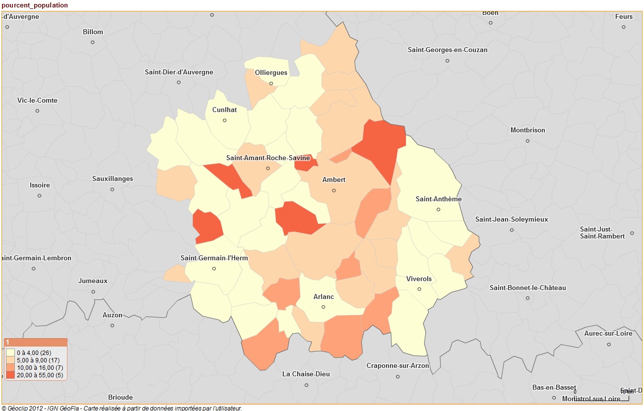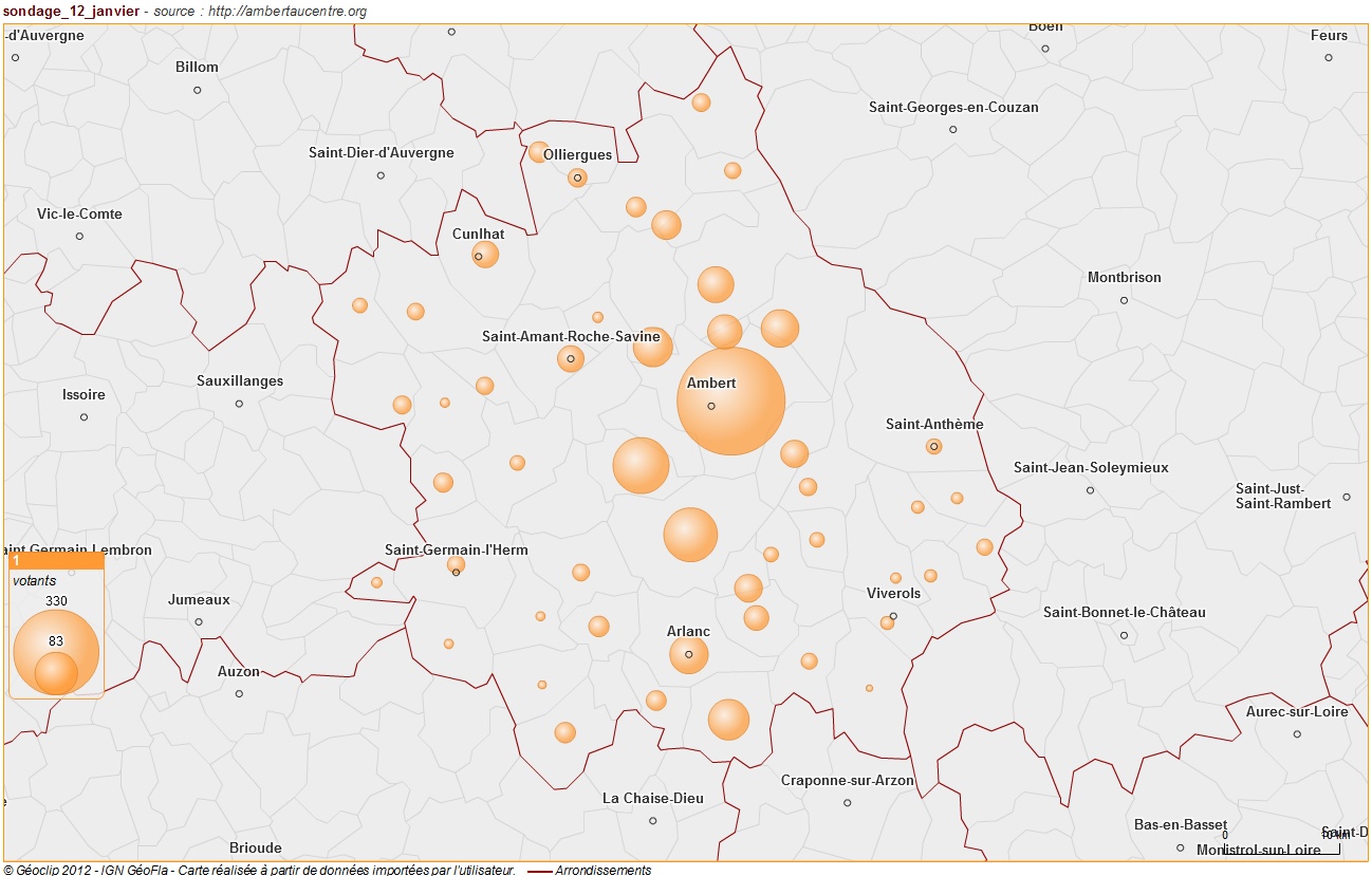 Ces votes sont assez bien répartis sur l’ensemble de l’arrondissement, révélateurs de la provenance des lecteurs du blog Ambert au centre.