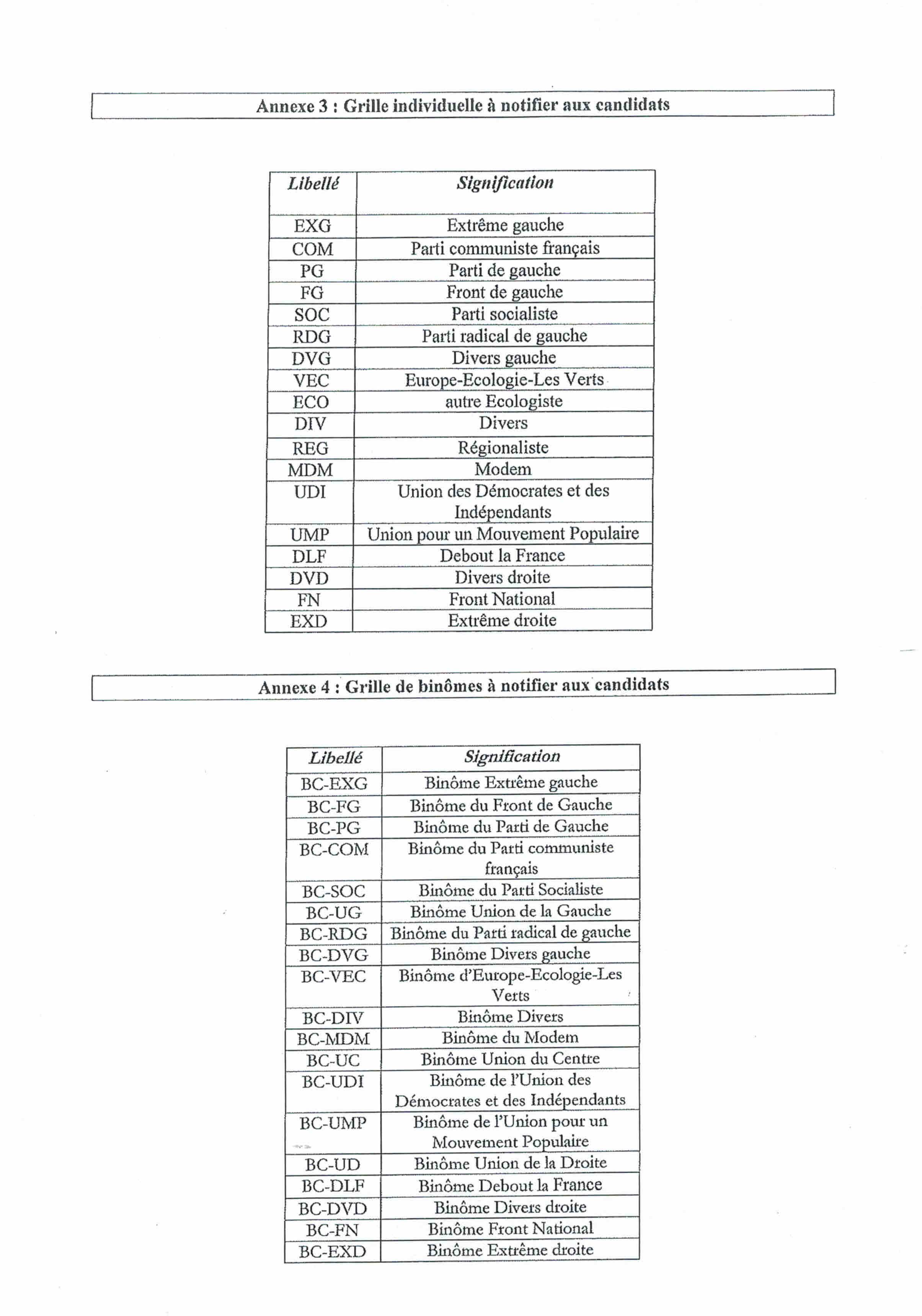 Voici le document communiqué par les services préfectoraux aux candidats lors du dépôt des candidatures ; les candidats indiquent donc quel classement ils souhaitent, sachant que si les deux candidats sont d’orientation différente il y a possibilité de combinaison.