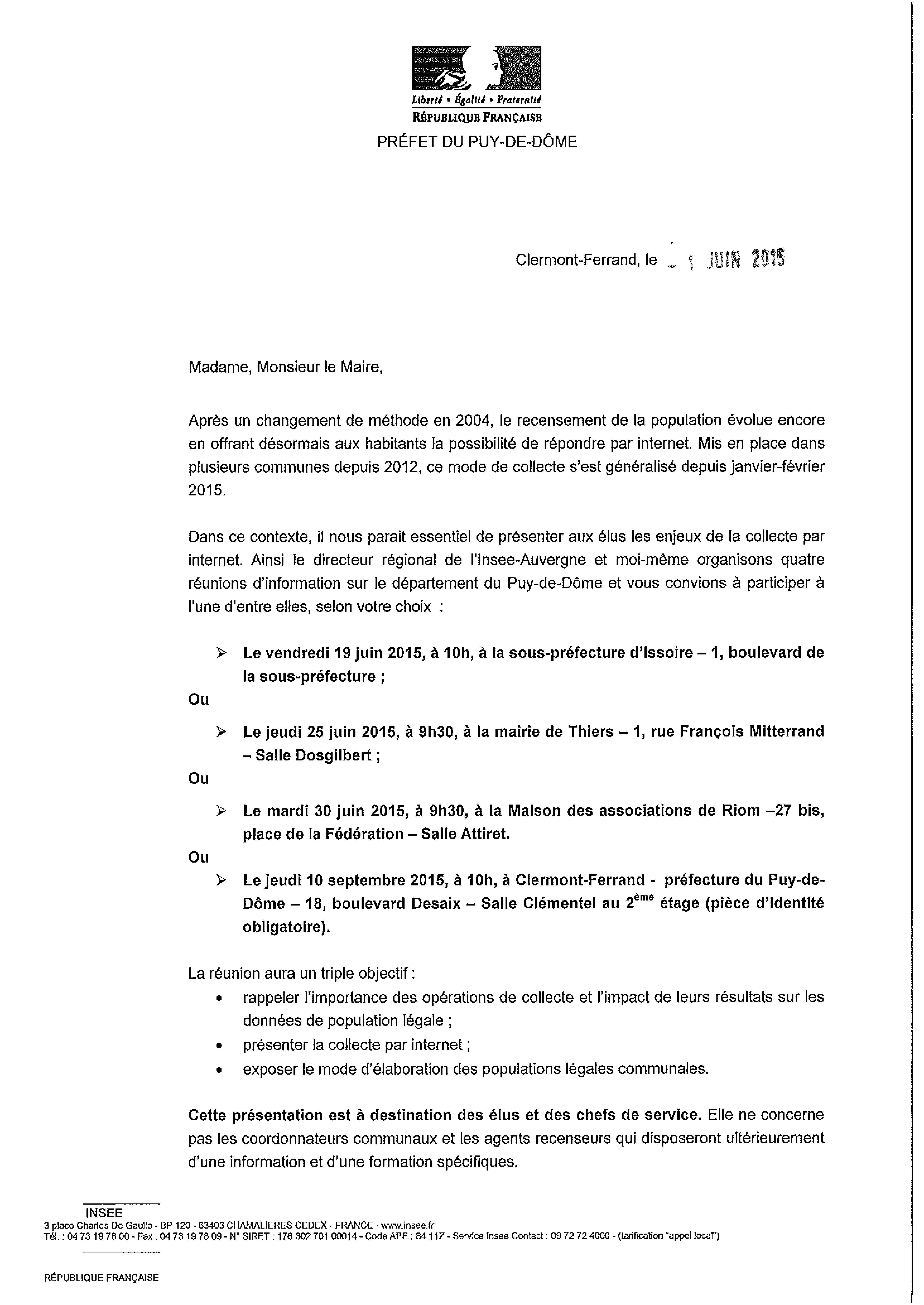 Drôle de courrier reçu par les mairies concernées par le recensement à venir et signé par le secrétaire général de la Préfecture, Thierry Suquet :