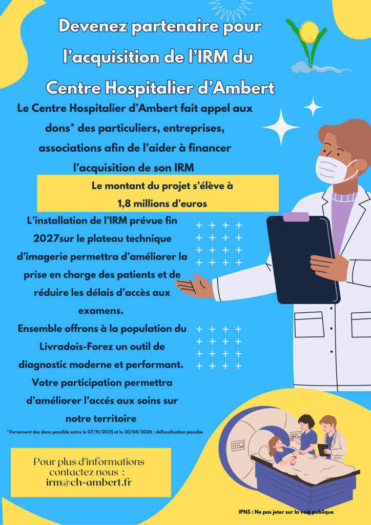 le centre hospitalier d’Ambert porte un projet d’équiper le bassin d’une IRM afin de renforcer l’offre de soins sur notre territoire.