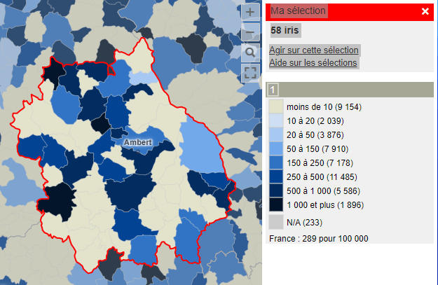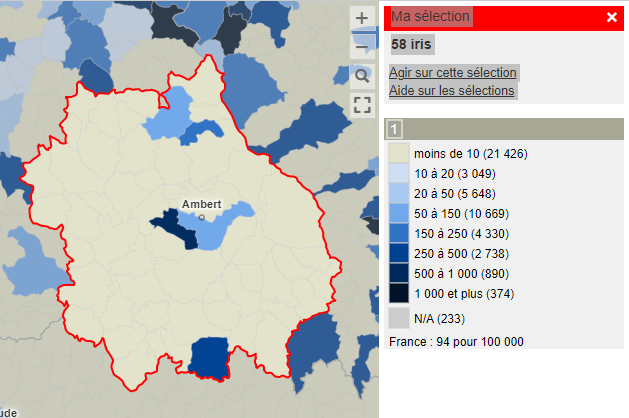 Je mets en copie mes collègues de la délégation départementale de l’Agence régionale de Santé du Puy-de-Dôme qui disposent aussi des données complètes mises à disposition chaque semaine –incluant les numérateurs et dénominateurs – et avec qui vous avez peut-être déjà des échanges directs.