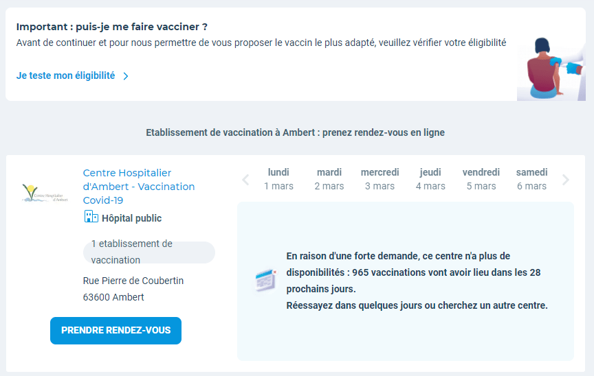 Si vous êtes calé sur internet : Vaccination COVID-19 à Ambert 63600 : Rendez-vous par Internet sous 24h – Doctolib
